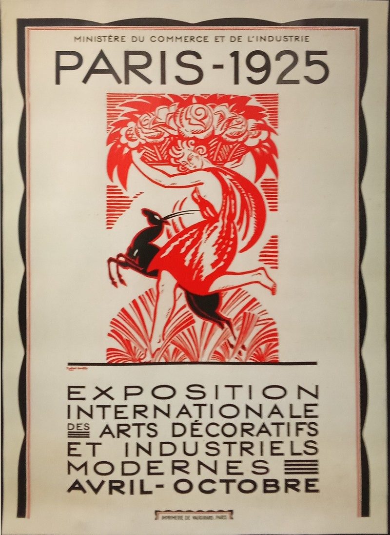 L’année 1925 marque le point d’orgue du mouvement Art déco avec l’Exposition internationale des Arts décoratifs et industriels modernes à Paris, la Ville Lumière, vers laquelle le monde entier tourne son regard. Le nom de l’exposition a souvent amené le public à la réduire au seul mouvement « Art déco », alors que son propos est beaucoup plus riche et qu’elle laisse percevoir deux tendances fondamentales : l’opposition entre art décoratif et production industrielle, entre artisanat et industrie.