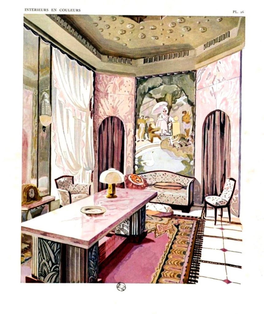 1925 est une date historique qui, pour les Français, s’identifie avec l’Exposition des arts décoratifs de Paris, illustration d’une gloire et d’une puissance retrouvées, illusion d’une paix universelle. Pour n’être point la plus considérable des Expositions françaises, elle sera, malgré les critiques, celle qui aura le plus de retentissement et, sans doute, la plus grande influence dans le monde. De très nombreux architectes et décorateurs français sont appelés sur les grands chantiers internationaux de la décennie qui suit. Les ambassades françaises et les paquebots ont été leur cheval de Troie. Après la Première Guerre mondiale qui a amené son lot de désolation, la reconstruction a vu apparaître les premiers exemples du nouveau style. En 1925, il faut être « moderne ». Le développement de l’aviation et de l’automobile l’exige, voyant surgir les premiers garages et aérodromes. L’Art déco est souvent associé au luxe, mais il a orienté aussi le dessin des habitations à bon marché et des cités-jardins. Les grands magasins et les boutiques se développent et créent leurs lignes de décoration. La femme moderne fait son apparition. Elle est incarnée par la garçonne qui fume, conduit, pilote des avions et choisit son architecte-décorateur. Elle n’oublie pas d’être élégante et les couturiers ou couturières, ami·es des architectes, inventent pour elle le sportswear. Les étranger·ères à Montparnasse, car Paris en 1925 est le centre du monde, ont introduit un levain neuf dans la vieille pâte de nos couleurs. Le cubisme s’impose certes pour un appel à un ordre géométrique fait de carrés, de losanges et de zigzags, mais Joséphine Baker, laissant tomber un instant sa ceinture de bananes, remet les pendules à l’heure en rappelant ce que l’art moderne et le nouveau mouvement doivent à la culture africaine.