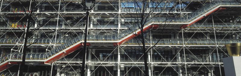 “Les escaliers mécaniques de la façade principale expriment à la fois la fonction qui leur est propre, et l’importance que revêt plus généralement le mouvement des visiteurs dans la conception du Centre. L’optimisme dont ce dernier fait preuve résulte aussi de cette lisibilité”. (Richard Rogers)