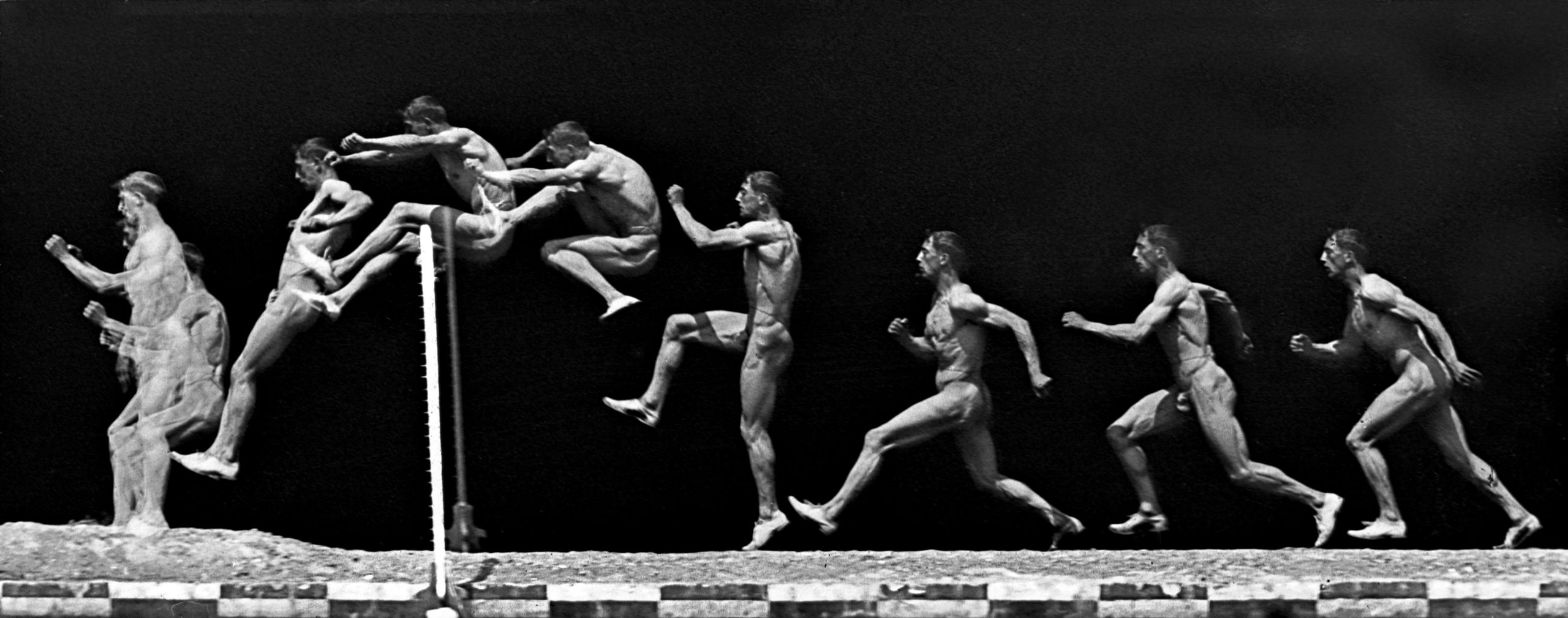 La première image de notre série consacrée au pionnier du sport et du cinéma Georges Demenÿ montre les étapes d’un saut en hauteur effectué par un athlète en 1906.