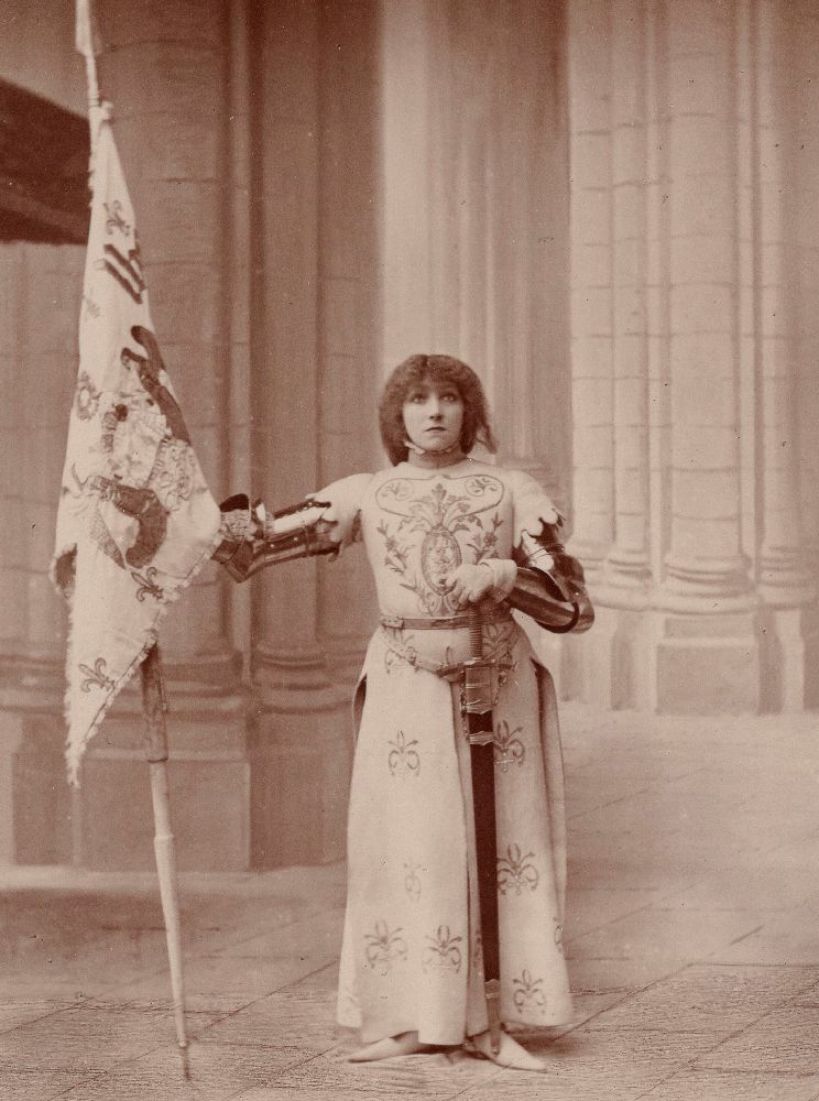 À la fin du 19ᵉ siècle, Jeanne d’Arc acquiert une nouvelle popularité sous les traits de Sarah Bernhardt, qui l’interprète à deux reprises : au Théâtre de la Porte Saint-Martin en 1890, dans une reprise de la pièce de Jules Barbier mise en musique par Charles Gounod (1873), puis dans son propre théâtre en 1909 (actuel Théâtre de la Ville, à Paris), dans un drame historique d’Émile Moreau. La participation de la célèbre comédienne assure aux représentations un certain retentissement, d’autant plus qu’elle s’implique aussi dans la conception des décors, des costumes et, pour la seconde pièce, de la mise en scène.