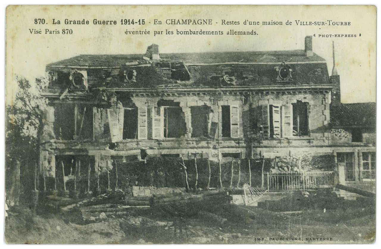 Restes d’une maison de Ville-sur-Tourbe, éventrée par les bombardements allemands.
