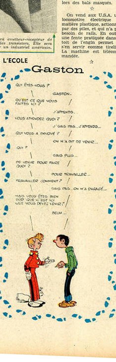 Considéré par Prunelle, rédacteur en chef de Spirou après le retrait de Fantasio, comme « le garçon de bureau le plus mauvais du monde », Gaston n’en reste pas moins, pendant tout le temps de sa parution dans les pages de l’hebdomadaire, le héros préféré des lecteurs.