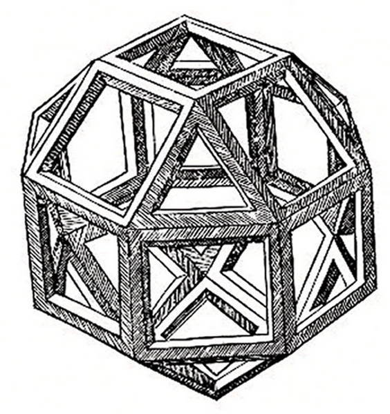Dans le portrait de Luca Pacioli datant de 1495, peint par Jacques de Barbaru et exposé au musée de Capodimonte de Naples, le mathématicien apparaît en habit franciscain, enseignant la géométrie euclidienne à un jeune noble (le duc d’Urbino). Maître et élève sont entourés de polyèdres et d’outils géométriques. À gauche pend un polyèdre appartenant à la famille des solides d’Archimède. Beaucoup de ces polyèdres apparaissent dessinés par Léonard de Vinci dans De divina proportione.