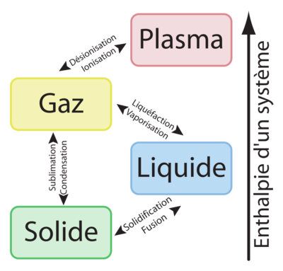 Durant notre scolarité, nous avons appris qu’il y avait trois états de la matière : solide, liquide, gazeux, et que le passage d’un état à l’autre s’effectuait par variation du volume, de la température et/ou de la pression. Mais d’autres états moins habituels ont été découverts et en particulier le plasma, nommé aussi quatrième état de la matière.