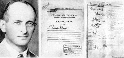 Début 1950, grâce à la complicité d’anciens nazis et du gouvernement Peron, il obtient un passeport au nom de Ricardo Klement ainsi qu’un visa argentin.