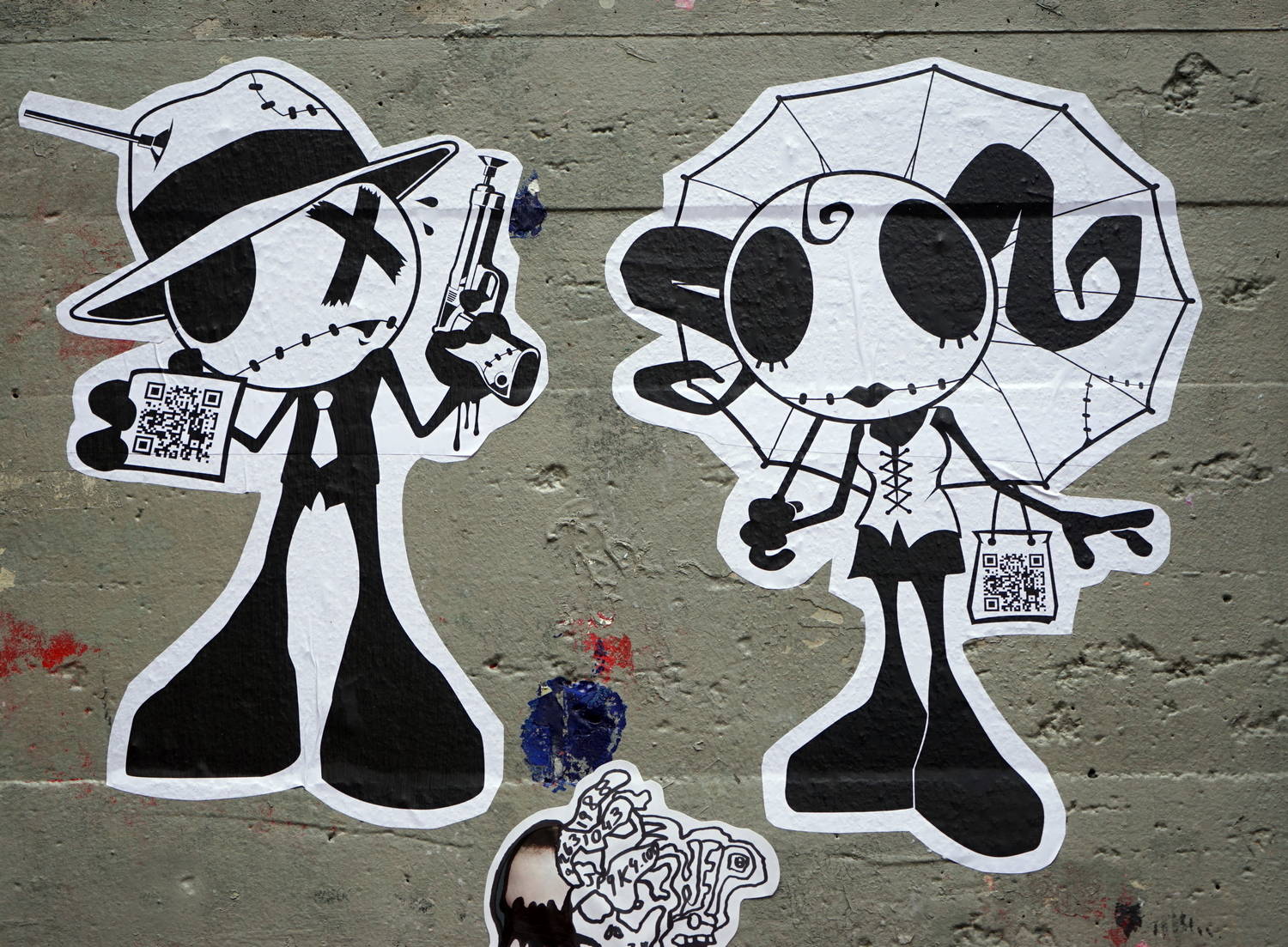 Quand les murs ne lui servent pas de toile, Arsen, le créateur des Ikos, les exposent dans les galeries, représentés sur des aplats de couleurs vives, sur toile ou sur bois. D’ailleurs, les QR codes présents sur la photographie aux côtés des personnages renvoient à la page Facebook de la galerie Nollet, lieu d’exposition des œuvres d’Arsen.