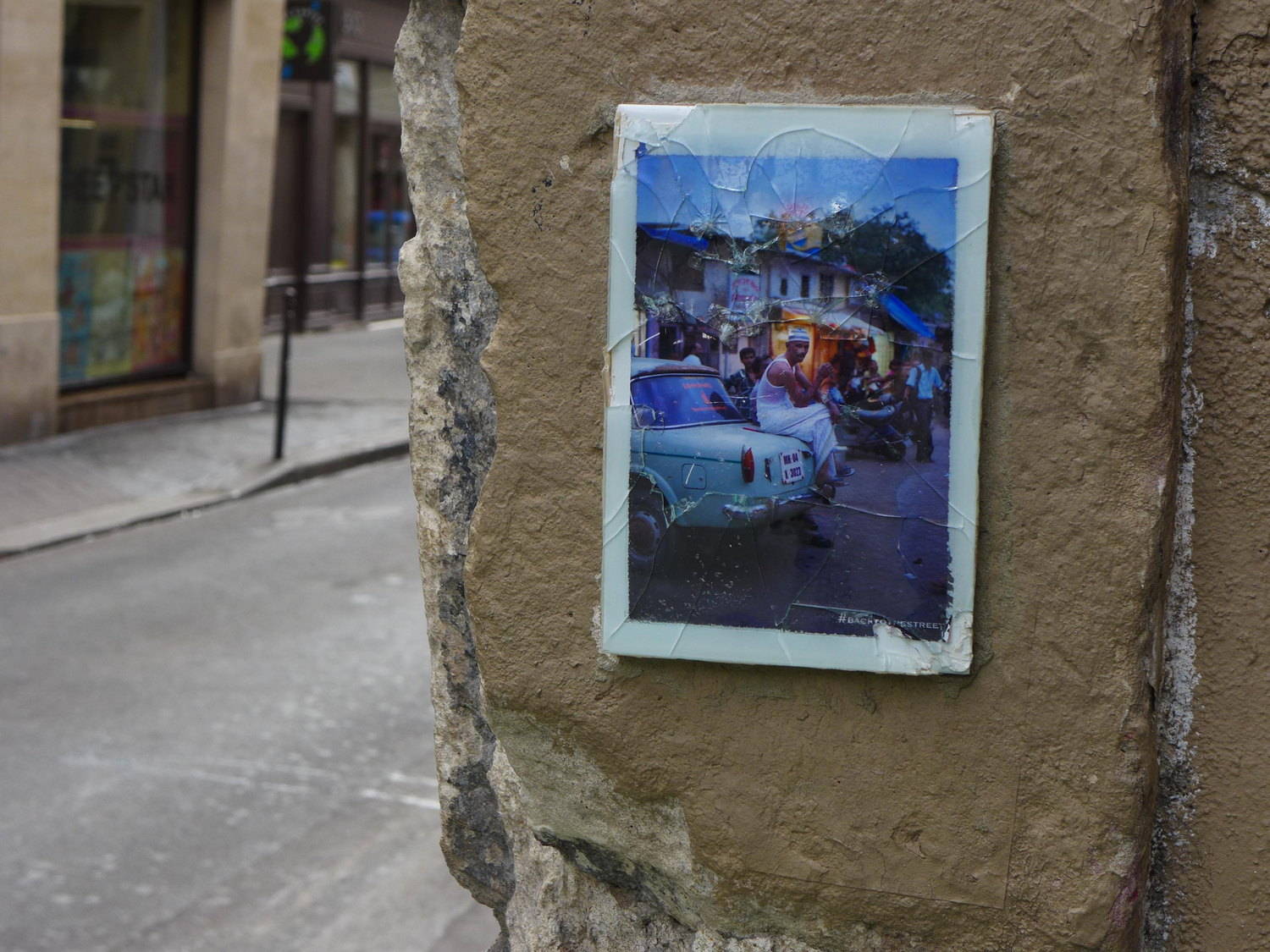 Un artiste se faisant appeler #Backtothestreet, cimente de petits cadres en verre contenant une photographie. Le dispositif artistique est simple : les cadres sont installés à hauteur d’homme, mais le petit format oblige le passant à s’approcher pour en comprendre le sujet.