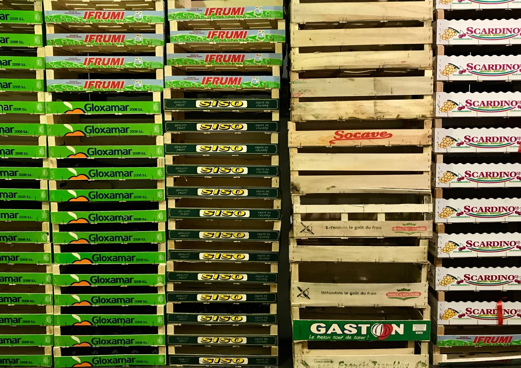 Une fois par an, les étudiants de l’atelier préparatoire se rendent sur les marchés pour récupérer des cagettes destinées au rebut. Les cagettes sont stockées, triées et désossées. Ensuite, la matière est travaillée selon différentes techniques avant d’être utilisée pour créer un objet.