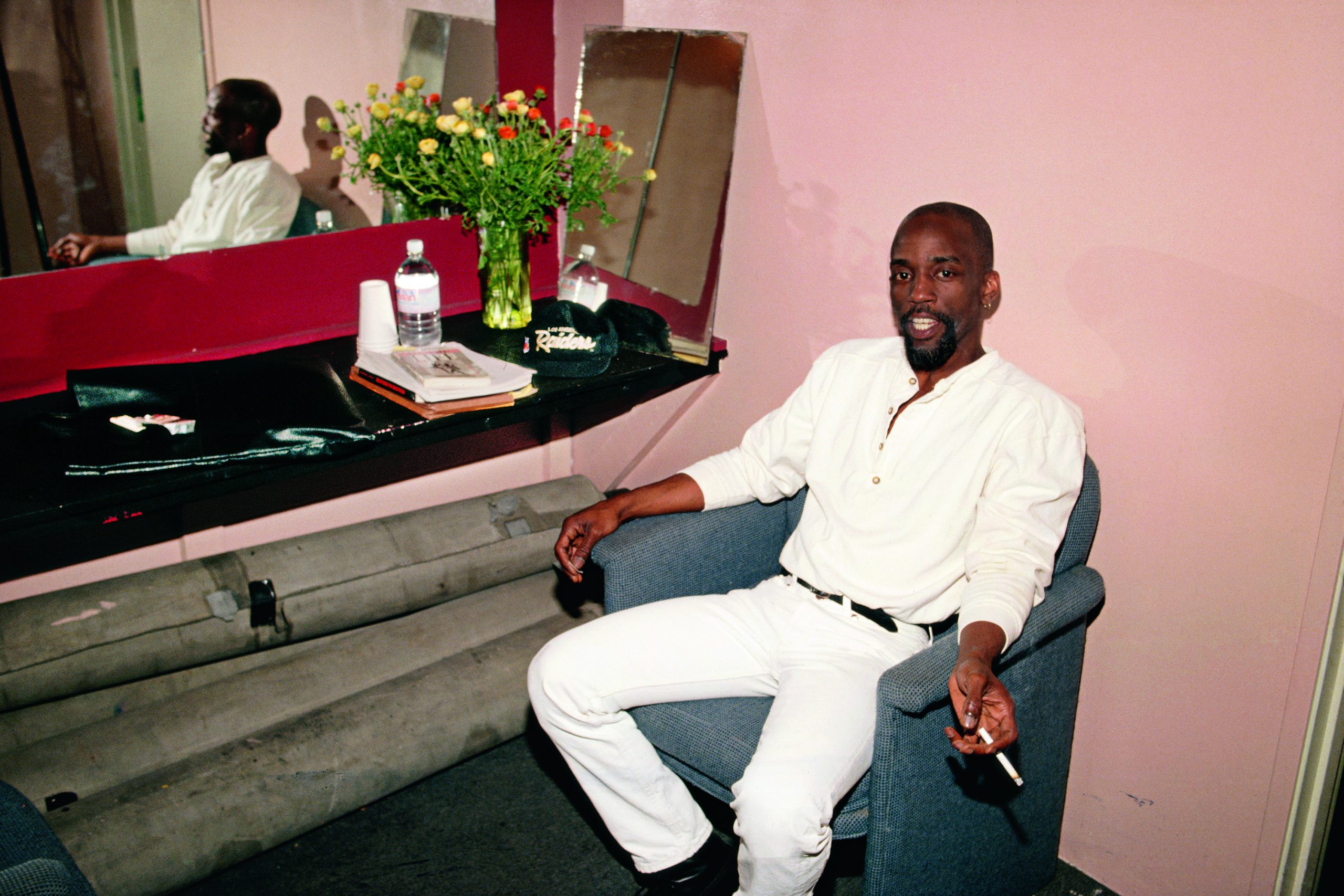 Hemphill est mort en 1995, et c’était un poète de légende, connu pour ses écrits plein d’élégance sur des sujets qui touchaient les Noirs américains, et plus particulièrement les Noirs américains homosexuels. Il joue dans Black is… Black ain’t, de Marlon Riggs, et dans Looking For Langston d’Isaac Julien. Cette image donne à voir un moment d’intimité, juste avant une performance publique. »