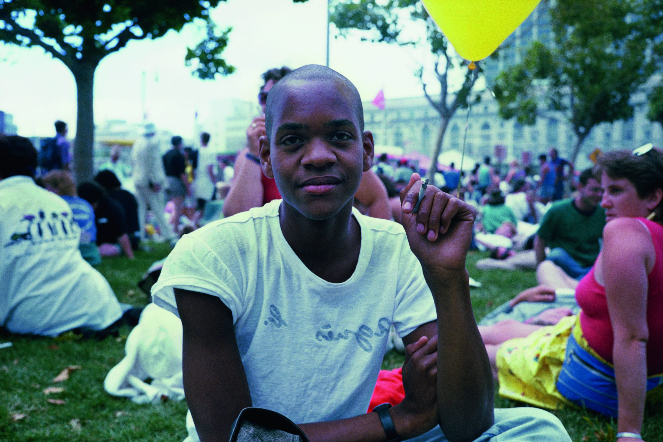 « Cette image est l’un des nombreux portraits de moi que contient l’Ektachrome Archive. On me voit dehors en train de fumer une cigarette, à San Francisco, après que j’ai coupé mes dreadlocks pour la première fois. J’avais déménagé en Californie depuis peu, et j’étais à San Francisco pour assister à la Gay Pride. Beaucoup d’autres photographies de l’Ektachrome Archive ont été prises pendant le défilé, et on y voit nombre de mes amis de Californie.