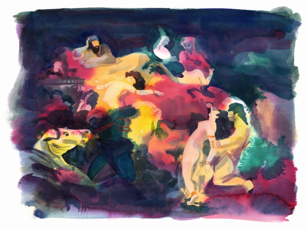 Ces quatre dernières années, Catherine Meurisse a fait évoluer son trait, résultat d’un regard neuf qu’elle porte sur le monde. Entre le calme des paysages japonais et l’adaptation libre et flamboyante des toiles de Delacroix, la dessinatrice invente un nouveau style.