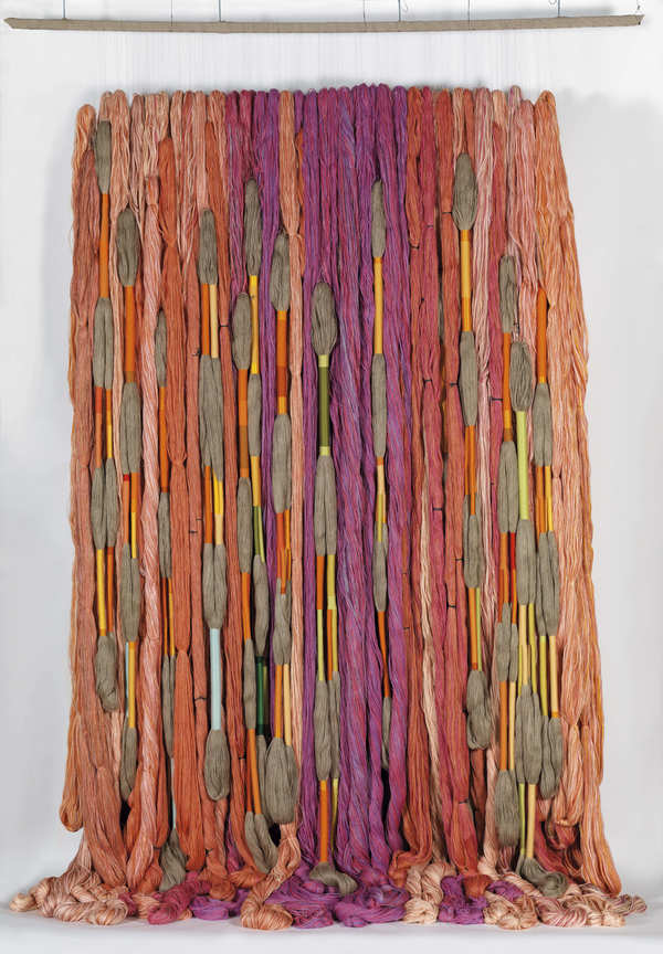 Sheila Hicks entrelace, tisse et suspend les couleurs à l’aide de fibres de laine, de lin, de coton… Ses œuvres sont souvent monumentales. Son travail, qui s’inscrit dans la filiation des arts des textiles précolombiens, de l’abstraction géométrique et du Bauhaus, décloisonne les genres artistiques avec une liberté absolue.